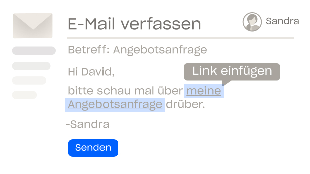 Sagen Sie Lebewohl zu sperrigen E-Mail-Anhängen und Hallo zu sicherer Dateifreigabe – mit DocSend. Teilen Sie mehrere Links in Sekunden oder senden Sie personalisierte Dateianfragen. Stellen Sie nahtlose Anzeige-Erfahrungen bereit, die alle großen Dateiformate unterstützen.
