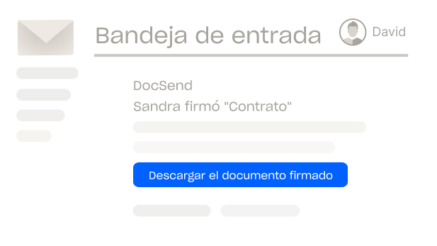 Convierte archivos en documentos que se puedan firmar con validez legal, o bien créalos directamente desde DocSend. Además, simplifica tu flujo de firma electrónica con el uso compartido de enlaces intuitivo y exclusivo de la plataforma. Podrás completar tus documentos de forma segura y cumpliendo tanto las normas de firma electrónica como la Ley Uniforme de Transacciones Electrónicas de los Estados Unidos.