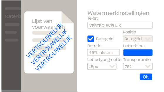 Verbeter de effectiviteit van je digitale watermerken door de informatie van je kijker automatisch weer te geven. Configureer je watermerk om het e-mailadres, IP-adres, de datum en tijd van je kijker weer te geven om je gedeelde informatie zelfs verder te vergrendelen.