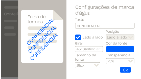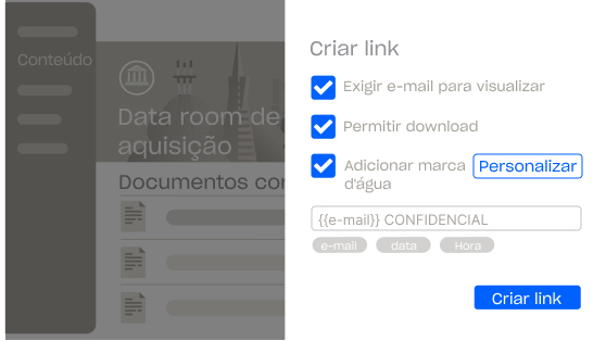 Aprimore a eficácia da sua marca d'água digital exibindo automaticamente as informações do visualizador. Configure sua marca d'água para refletir o e-mail, endereço IP, data e hora do visualizador para proteger ainda mais as informações compartilhadas.
