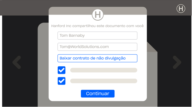 Simplifique o fluxo de trabalho tradicional de acordos de confidencialidade e transforme o processo de assinaturas com uma única etapa. Permita que os visualizadores ou parceiros de negócios dediquem mais tempo às informações que você gostaria de compartilhar e menos tempo à assinatura dos acordos de confidencialidade.