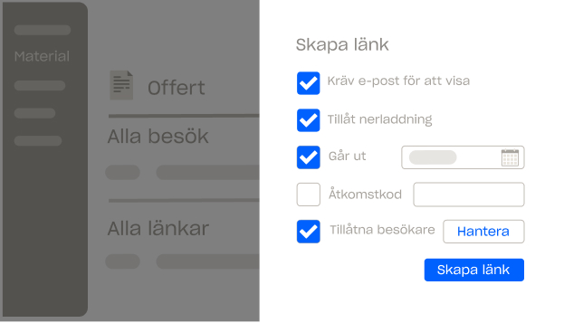 Skydda känslig kundkommunikation och immateriell egendom med ett enda klick. Bevara kundernas säkerhet med utgångsdatum på filer, lösenordsskydd, mejlbekräftelser, inbyggda sekretessavtal och mer.