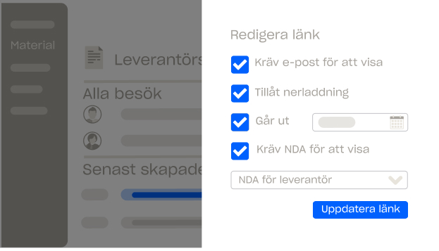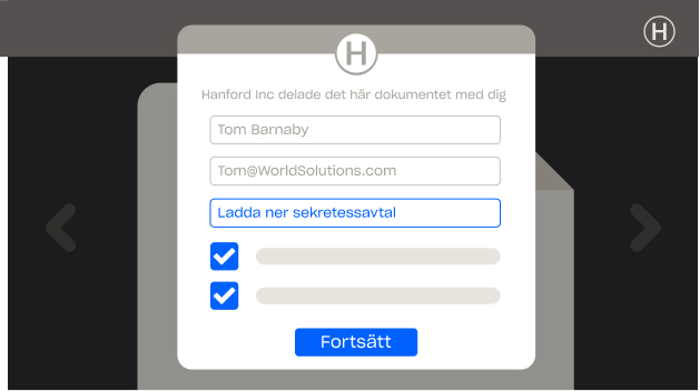 Förenkla det traditionella NDA-arbetsflödet och gör hela arbetsflödet för underteckning av sekretessavtal till en process med ett enda steg. Låt läsarna eller affärspartner fokusera sin tid på informationen du vill dela istället för att ödsla den på att få sekretessavtal undertecknade.