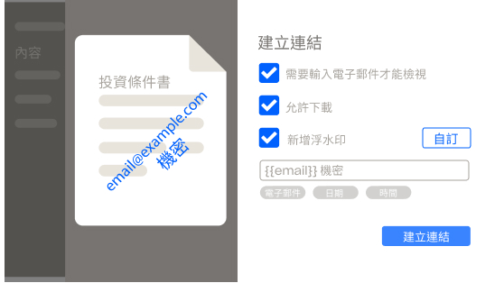 可設定連結到期日、浮水印、密碼保護和細部權限,全盤控管募資流程,並引導有所成效的投資者對話。