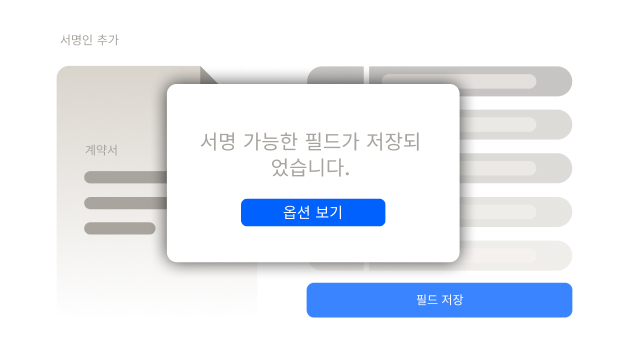 모든 서명 당사자에게 직관적인 전자 서명 경험을 제공해 거래 관리와 실행을 간소화하세요. 맞춤형 서명 필드를 끌어다 놓거나 원클릭 서명 기능을 활성화할 수 있습니다.