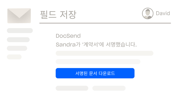 실시간 문서 열람 알림을 받고, 서명인이 계약서를 검토하는 데 시간을 얼마나 들였는지 인사이트를 확인하며 후속 조치 전략을 최적화하세요. 서명이 완료되면 서명 과정에 대한 내역을 받게 되며 해당 문서의 서명 목록을 내보낼 수도 있습니다.