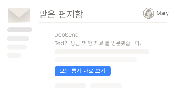 오류가 있거나 수치가 제대로 업데이트되지 않은 덱을 전달하게 될까 봐 걱정하지 마세요. DocSend 링크는 로그인이 필요하지 않으며 열람인을 방해하지 않고 업데이트와 추적이 가능합니다.