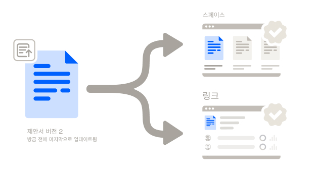 DocSend를 사용하면 대용량 파일 다운로드, 스팸 필터 때문에 못 받은 이메일, 버전 관리 문제를 신경 쓸 필요가 없습니다. DocSend에 파일을 업데이트하고 나면, 모든 관련 링크가 자동으로 업데이트되어 새로운 버전을 반영합니다.